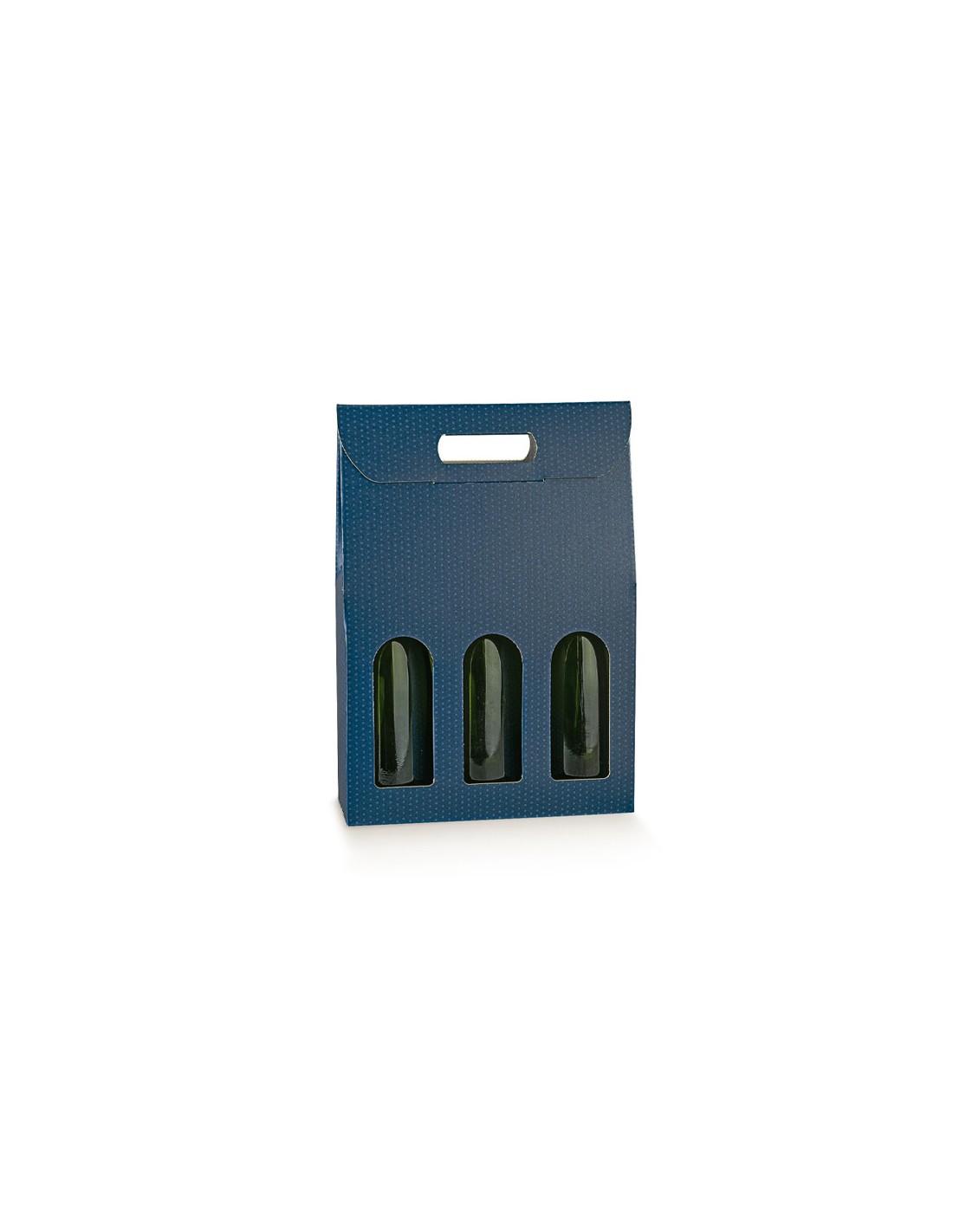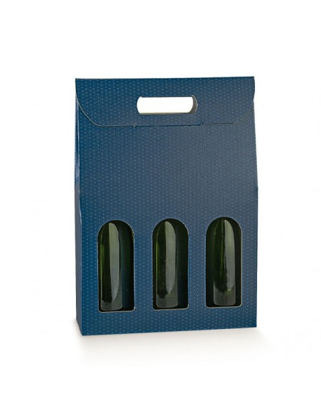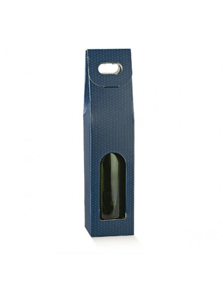 Scatole porta bottiglie di vino - finitura di colore blu con delicata texture a pois tono su tono.